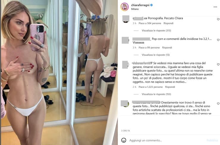 Chiara Ferragni pubblica una foto su Instagram in cui indossa solo uno slip regalando uno spettacolo mozzafiato, ma le critiche sono feroci.