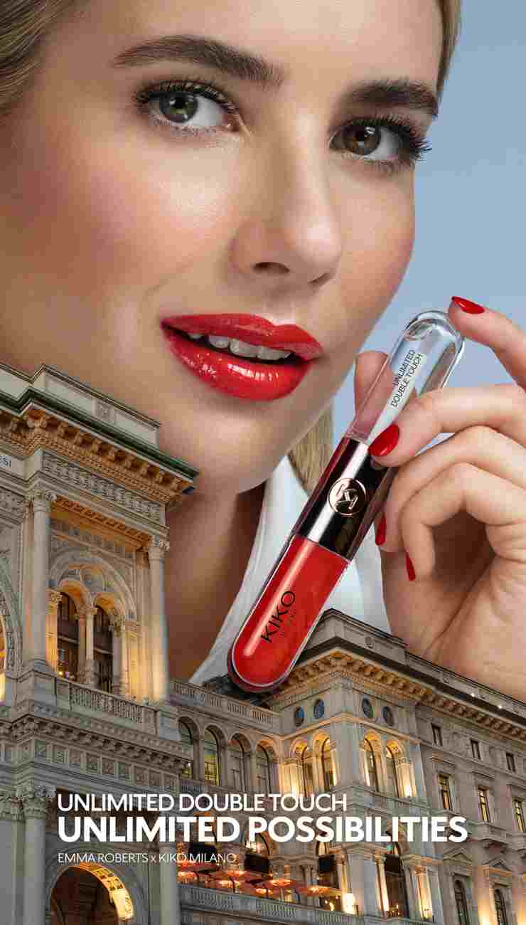 L’attrice Emma Roberts, prima ambassador mondiale del brand Kiko Milano, è la protagonista della nuova campagna dei rossetti Unlimited Double Touch.