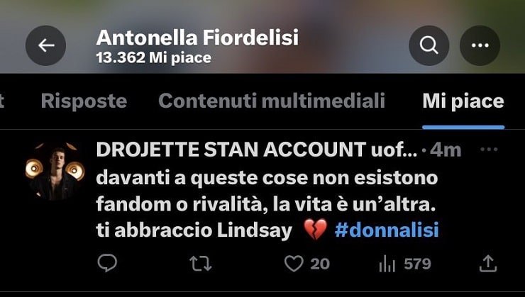 Una tragedia enorme di cui è venuta a conoscenza anche Antonella Fiordelisi che, con un like du Twitter, ha fatto capire quanto di fronte a tragedie del genere, non esistano i fandom.