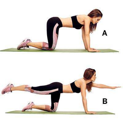 Mettiti a quattro zampe. Le mani sono allineate con spalle e ginocchia con fianchi. Tieni la schiena e il bacino immobili e stabili, allunga il braccio destro in avanti e la gamba sinistra in avanti. Tenere premuto per un secondo, quindi tornare alla posizione iniziale. Fai la stessa cosa dall’altra parte. Ripeti il processo da 10 a 15 volte. Questo esercizio allevia la parte bassa della schiena e rafforza i glutei.
