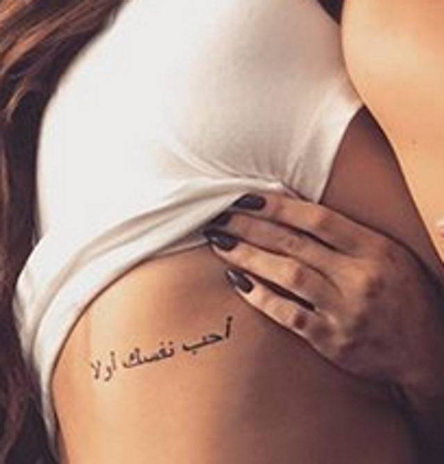 Una frase scritta in arabo che significa “Ama prima te tesso” e che pare sia stata scelta da Selena proprio durante uno dei suoi tira e molla con Justin Bieber.