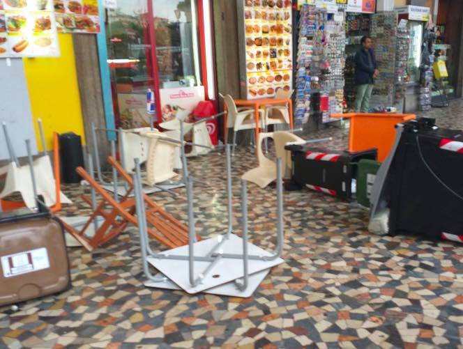 “E’ stata una cosa veramente brutta, non è la prima che vedo ma questa è stata proprio brutta. C’era gente che scappava perchè questi (i malviventi, ndr) spaccavano tavoli, rompevano vetrine, buttavano a terra i secchioni cilindrici… Erano due, uno brizzolato sulla cinquantina e l’altro giovane con una bandana in testa. Erano di fronte al centrale, accanto alla farmacia sotto i portici e hanno tirato bastoni addosso alle vetrine, davano mazzate. La gente filmava tutto, noi aspettavamo le guardie, ma non arrivava nessuno. Dopo un po’ è arrivato uno che ha mostrato un distintivo e ha iniziato a sparare: lui sparava a loro e loro sparavano a questo. Io allora sono scappato col cliente…Una scena assurda”