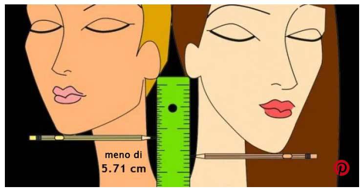 Questo trucco è stato inventato da un famoso esperto nel mondo dell’acconciatura, Gilles Robinson. Consiste nel misurare la distanza tra il lobo dell’orecchio e la parte inferiore del mento. Per fare questo, prendi un righello e posizionalo in modo che la linea da 0 cm si trovi esattamente nella parte inferiore del lobo dell’orecchio, quindi posiziona una matita appena sotto il mento, con la punta appuntita alla regola. Ora tutto ciò che devi fare è leggere il numero indicato dalla matita. Se è inferiore a 5,71 cm, i capelli corti sono quelli più adatti al tuo viso, ma se è maggiore di 5,71 cm, i capelli lunghi ti daranno più valore.