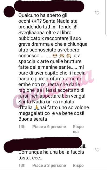 Quello che però stiamo leggendo sulle sue pagine social nelle ultime 20 ore ci ha lasciati di stucco. Forse per la prima volta vediamo infatti molti follower scagliarsi contro Nadia, mettendo addirittura in dubbio la sua buona fede.