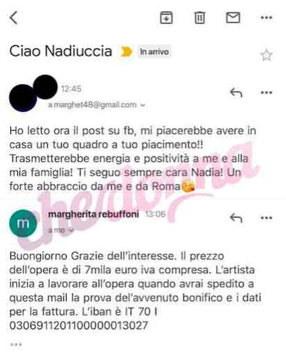 Ma andiamo con ordine. Ieri Nadia ha postato sui suoi profili questo post: un quadro dipinto da lei accompagnato da questo commento