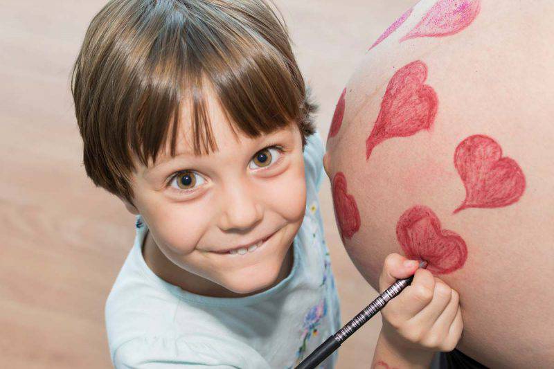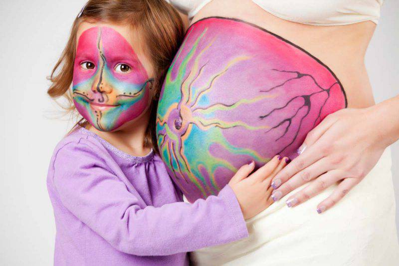 Se la mamma ha già dei bambini, allora il body painter cercherà di coinvolgerli nella creazione, in modo che anche il fratellino o la sorellina siano partecipi di questo momento di condivisione.
