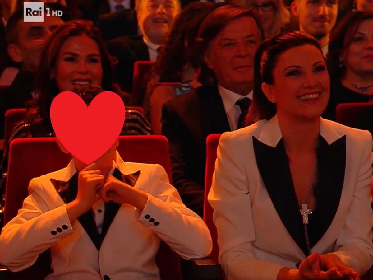 Quando Amadeus ha lasciato il pubblico per andare a porgere il proprio saluto ad Amadeus, in prima fila per sostenere la compagna Georgina Rodriguez, le telecamere hanno inquadrato anche la Civitillo e suo figlio che, sorridente, hanno messo in mostra la stessa giacca bianca con i dettagli neri.