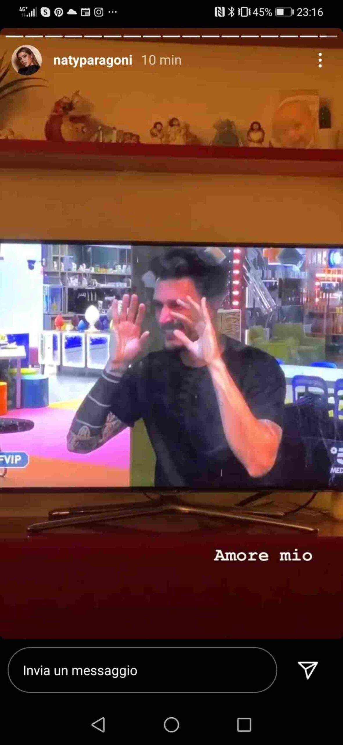 Natalia Paragoni ha deciso di rispondere in questo modo a chi ha criticato Andrea Zelletta al Grande Fratello Vip, pubblicando una foto che ritrae il suo compagno intento a godersi la sorpresa che gli autori hanno avuto in serbo per lui, accompagnando il tutto con la scritta “Amore mio”.