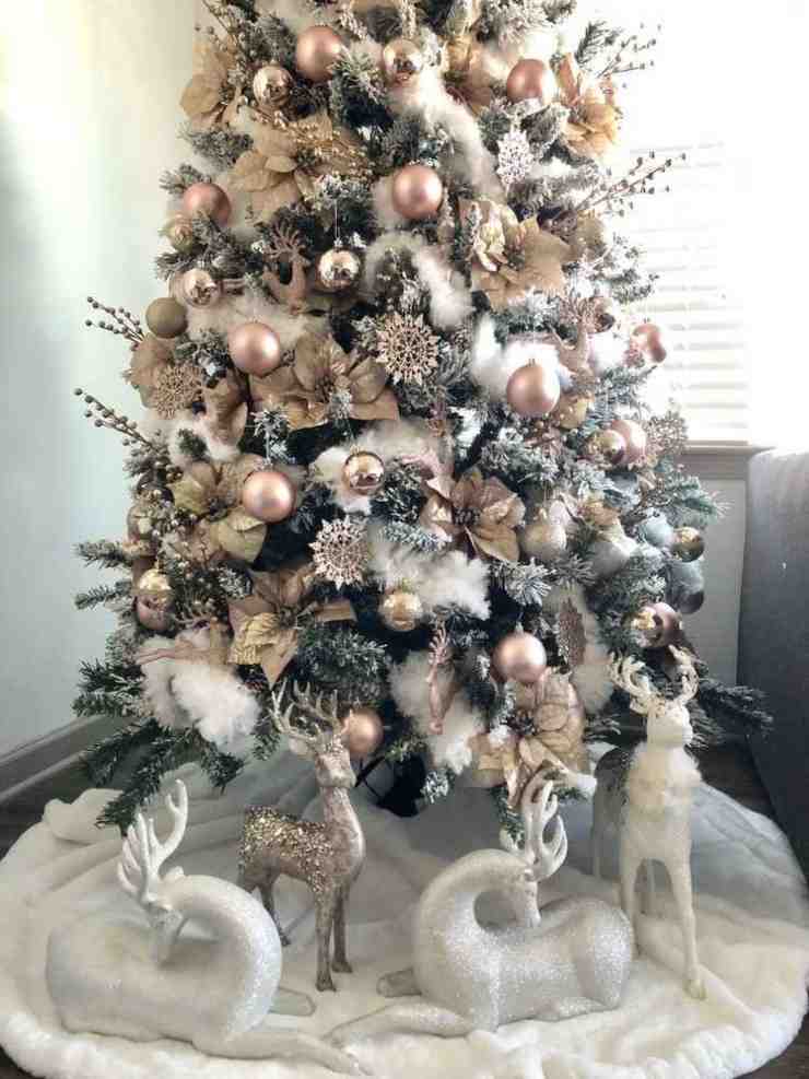 Inoltre, potrete anche valutare l’idea dell‘albero finto verde con le punte bianche innevate che è un ottimo compromesso e un’idea che ben si sposa con le decorazioni rosa. Altrimenti un’altra base adatta è quella dell’albero bianco. In questo caso però otterrete un effetto decisamente candy. Tutto sta al vostro gusto personale.