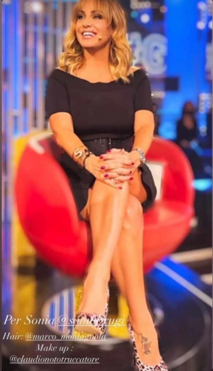 Look come al solito molto sofisticato e bon ton quello scelto da Sonia Bruganelli (che ha recentemente fatto un annuncio che non è piaciuto ai fan). La bella showgirl ha optato per un abito corto al ginocchio nero con un’elegante cintura in pelle a mettere in risalto il punto vita.