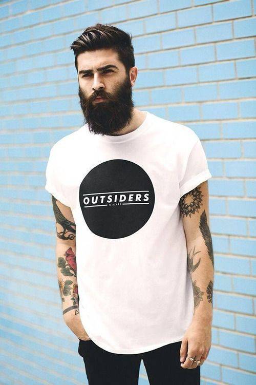 Barba folta, jeans attillati, maglie con citazioni letterarie e/o considerazioni sul mondo.