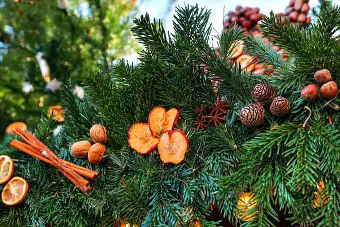 Albero di Natale decorato con arance essiccate e cannella (iStockPhotos)