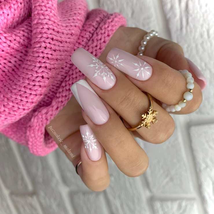 I fiocchi di neve ovviamente vengono associati alla stagione più fredda dell’anno, soprattutto se si abita in zone abbastanza fredde e caratterizzate da basse temperature. Perciò non c’è fantasia migliore del fiocco di neve, che vi catapulterà direttamente nell’atmosfera invernale. Il nostro consiglio è quello di scegliere basi bianche, nude o rosa chiaro per un look glamour ma non troppo esagerato. Quindi aggiungete dei fiocchi di neve per completare la vostra meravigliosa manicure.