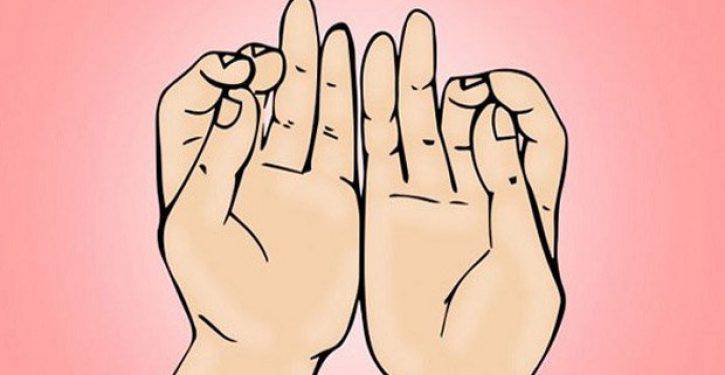 - Metti le mani davanti a te, con i palmi rivolti verso l’alto, quindi raccoglile in modo che le dita si tocchino l’un l’altra.