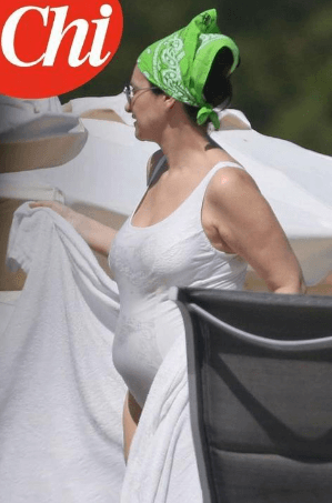 La Pausini, che ha da poco annunciato di volersi prendere una pausa per dedicarsi alla famiglia, indossa un costume intero bianco e le sue forme appaiono morbide e floride.