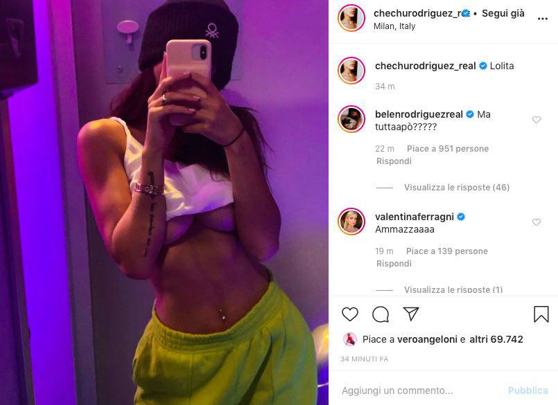 Belen bacchetta Cecilia su Instagram per lo scatto hot