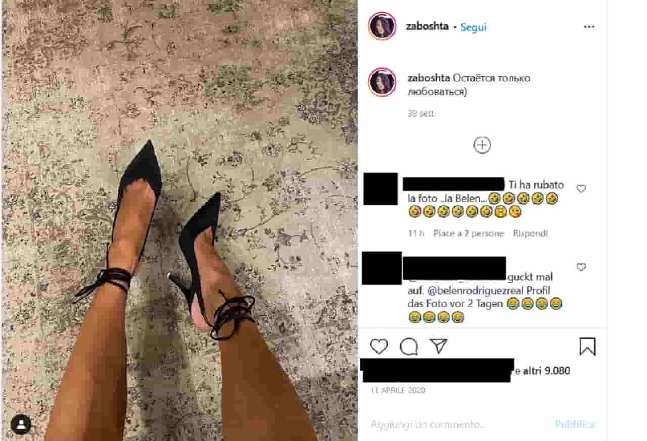 Belen Rodriguez pubblica sui social la foto dei piedi, ma spunta una modella russa che aveva condiviso lo stesso scatto un anno fa.