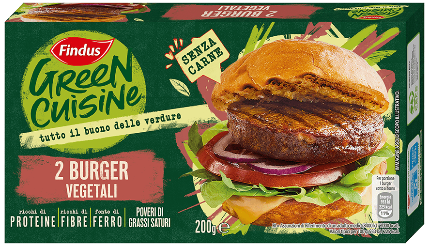 Il marchio Green Cuisine è una linea di prodotti Findus, comprendente i burger vegetali, attraverso questa gamma l’azienda vuole dare il suo contributo alla salvaguardia del pianeta Terra, che sta soffrendo a causa dell’inquinamento, delle deforestazioni e dell’eccessivo consumo d’acqua e di terreno.