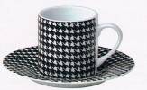 Puntate anche su oggetti trovati nei mercatini per dare quel tocco vintage, lenti di ingrandimento, un campanello da reception, una chiave d’epoca e dipingeteli di nero con la vernice spray, accostandoli poi a delle stampe grafiche poggiate su un minipiedistallo accanto ad un set di cocktail per le occasioni speciali, come quello della LSA International, o magari a delle tazzine che userete per offrire un caffè, decorate con il motivo pied-de-poule, che non tramonta mai.