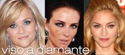 Il viso a diamante è un volto molto particolare, ed è l’incrocio di due tipi diversi di forme: viso ovale e viso a cuore. Dal viso ovale, la forma a diamante, prende la giusta proporzione tra le parti: in questa tipologia di volto c’è molta armonia, le misure sono abbastanza calibrate e proporzionate, ma a differenza della forma ovale, dove tutti i lineamenti sono molto tondeggianti e sinuosi, il viso a diamante eredita dal viso a cuore la forma appuntita del mento e gli zigomi abbastanza pronunciati. La fronte è molto ampia, e se dovessimo paragonarlo ad una forma geometrica potremmo accostarlo ad un rombo