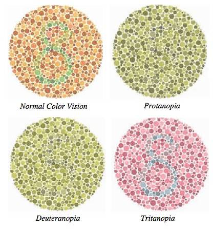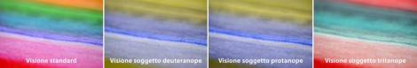 Ecco allora che sono andata alla ricerca sia di test per capire se siamo o meno affetti da daltonismo, sia foto che mettano a paragone l’originale con la diversa visione dei 3 tipi di soggetti daltonici: il deuteranope, il protanope e il tritanope. La deuteranopia, cioè l’insensibilità al colore verde, la protanopia, cioè l’insensibilità al colore rosso, e la tritanopia, cioè l’insensibilità al colore blu.