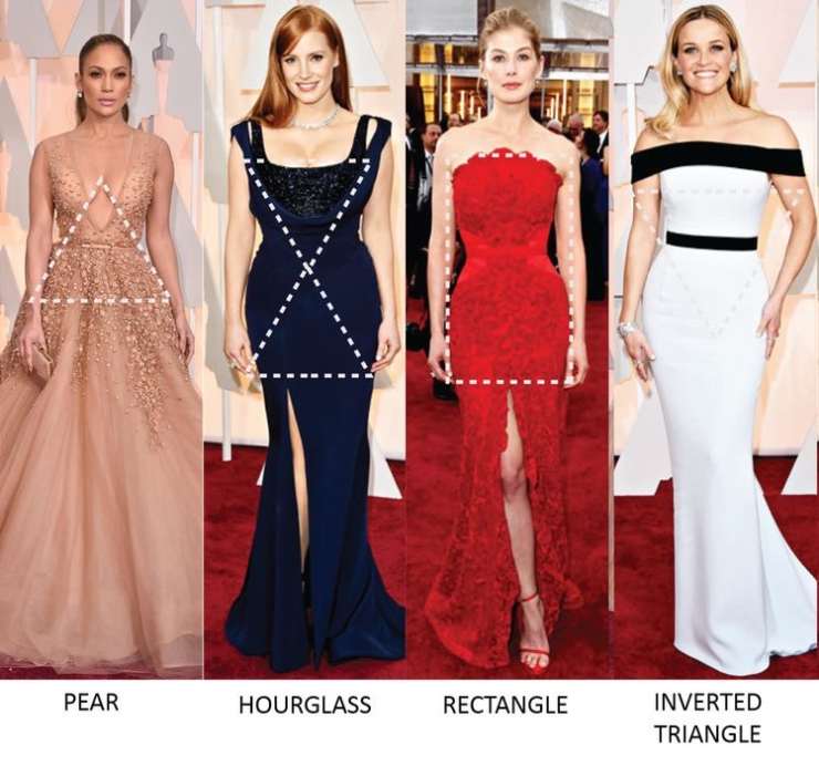 Bisogna poi fare attenzione ai colori. Come vi avevamo detto per la forma del corpo a mela, Come valorizzare il tuo bellissimo corpo a mela con queste piccole tips (chedonna.it) anche per questa forma diffusissima tra le star si deve giocare nel modo corretto con le tonalità. Nella parte alta del corpo vanno evitate fantasie e colori accesi che andranno invece scelte per vita, fianchi e fondoschiena.