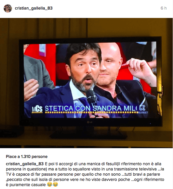 Qualcosa non deve essere piaciuto a Cristian della puntata del Maurizio Costanzo, tanto da postare su Instagram questa notte, forse guardando una replica della trasmissione, questo post al vetriolo: