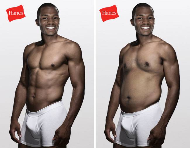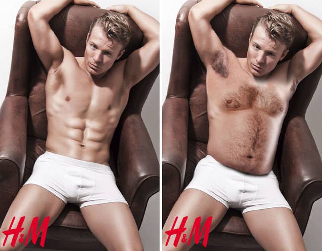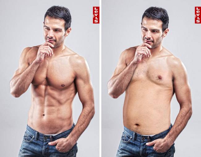 Risultato? Emerge in questa galleria che anche con un ventre un po’ marcato l’uomo non perde il suo fascino e il super modello diventa un uomo normale, quello della porta accanto, perdendo l’aurea e il mito che lo avvolge sui manifesti pubblicitari.