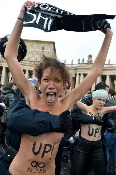 Ci sono poi donne che decidono di battersi con più impegno, con più ‘armi’, con più astio per i diritti che non sente di avere, e non avremmo nulla in contrario se queste battaglie fossero fatte nel rispetto di chi si ha di fronte. Sicuramente tutti avrete sentito del caso ‘Femen a San Pietro‘ per manifestare contro la decisione di Papa Francesco di partecipare al Parlamento Europeo di Strasburgo il 25 Novembre prossimo, un caso che sta facendo il giro del mondo, indignando i più per lo squallido spettacolo di cui si sono rese attrici le Ucraine Femen. Ma facciamo un passo indietro.