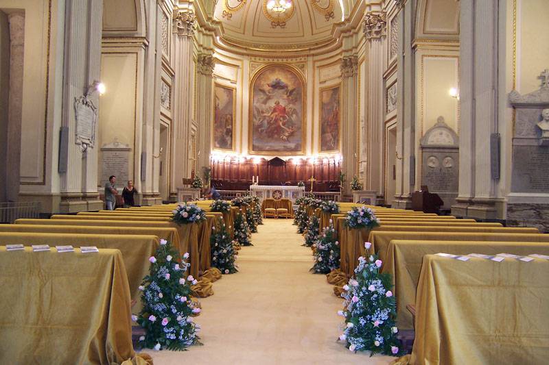 Anche gli addobbi devono basarsi sul tipo di chiesa(architettura e grandezza)e decidere così anche la loro posizione, di certo lunga la navata, vicino al banchetto degli sposi, sull’altare minore e se possibile sull’altare maggiore.