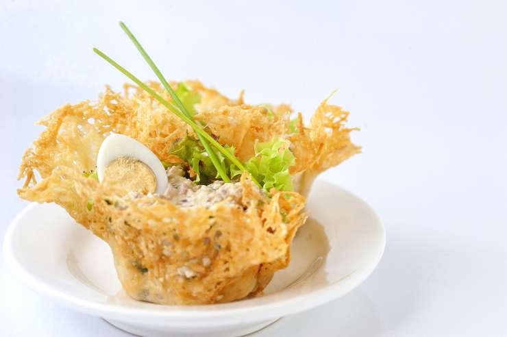 I cestini di parmigiano. Con lo stesso procedimento delle chips si può dar vita a dei cestini da riempire con verdure e besciamella, con pasta, o con ciò che si desidera. Si tratta di un buon modo per mantenere il parmigiano ancora per qualche giorno, donandogli una forma tutta nuova che non potrà non piacere e che in caso di ospiti a pranzo o a cena garantirà il successo.