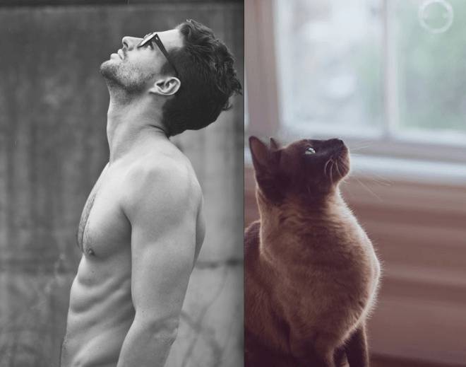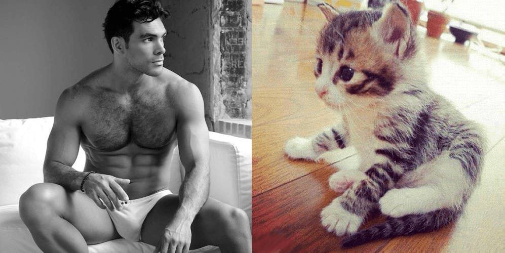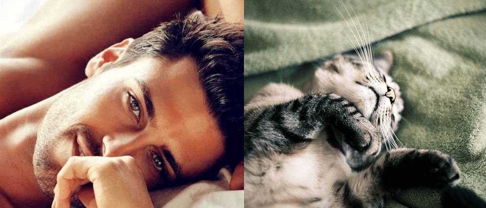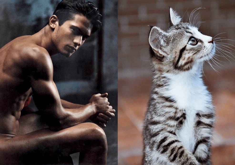 La foto di un animaletto peloso nella stessa posizione di un bellissimo modello o attore. Chi vince in fatto di sensualità, il felino o l’uomo? Ad ogni donna la sua preferenza..noi non sappiamo proprio scegliere!