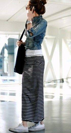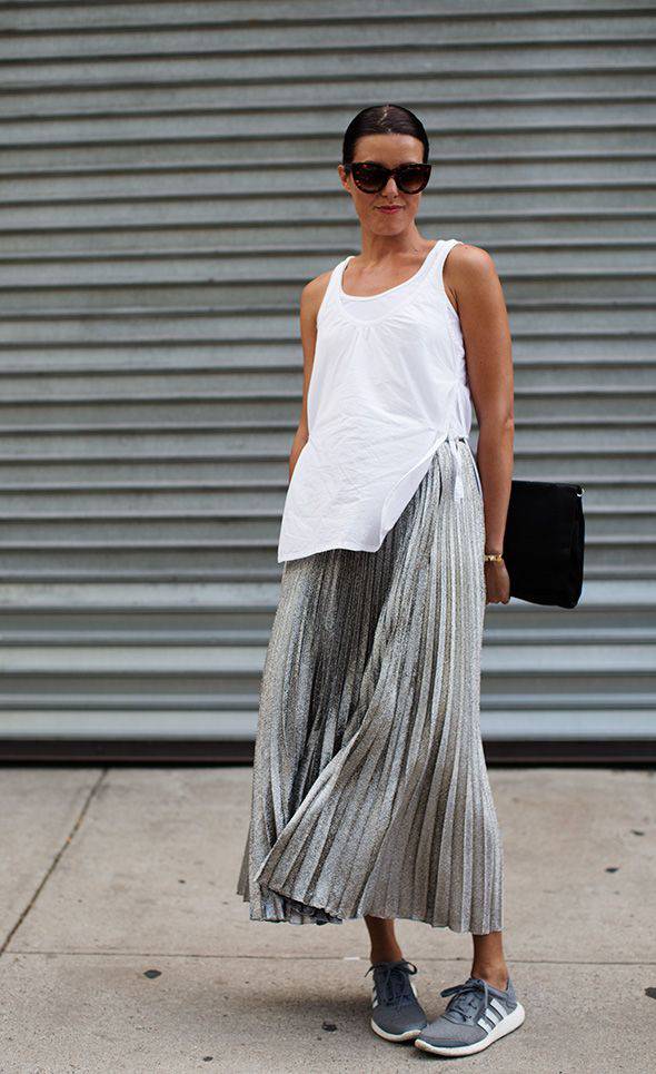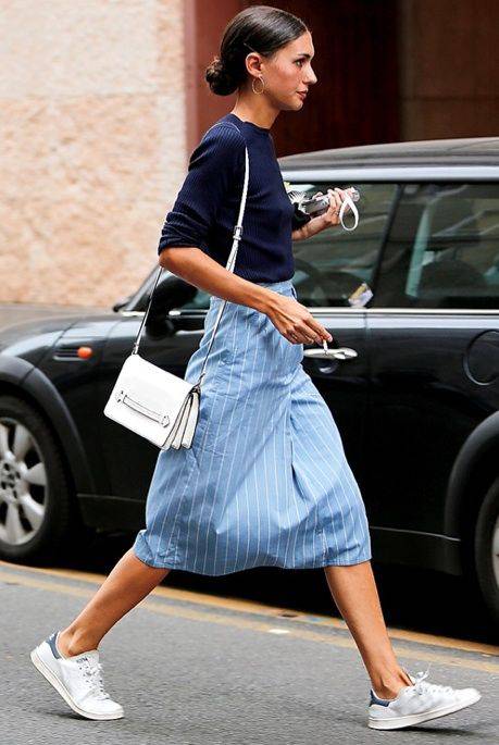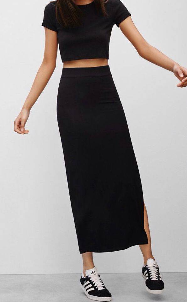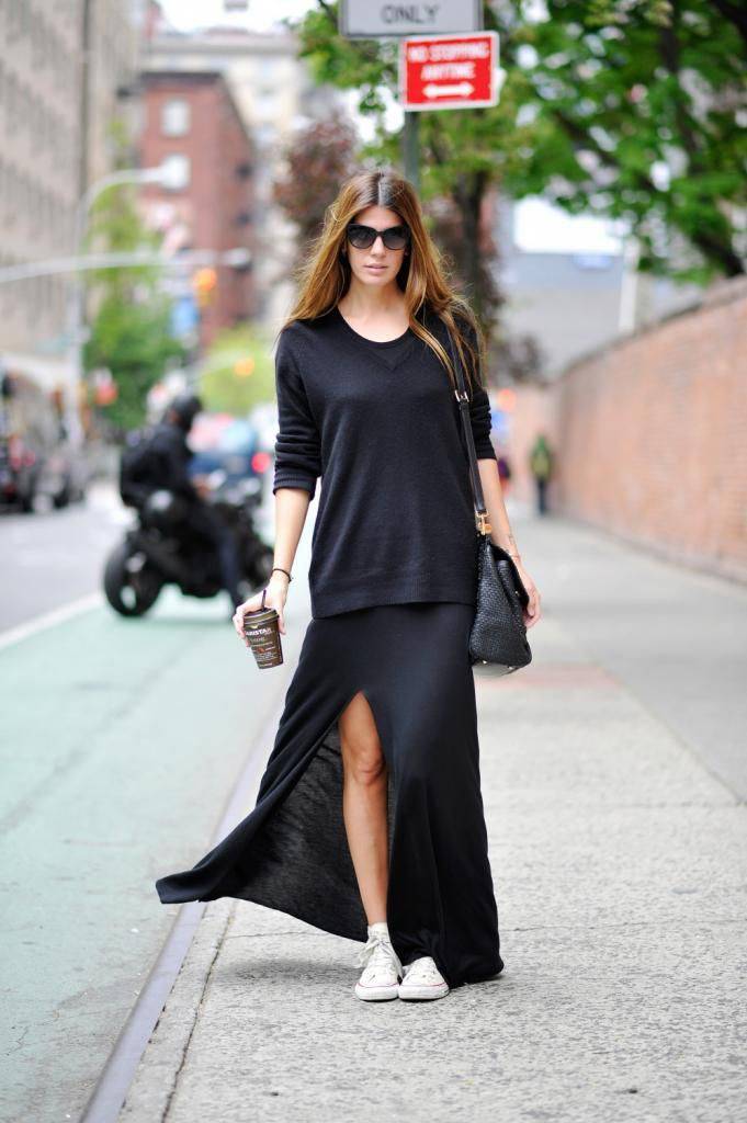 Vi consigliamo oggi un outfit davvero versatile, sbarazzino ed attuale. L’abbinamento perfetto, a nostro parere, è quello tra la gonna lunga, long skirt, e le sneakers.