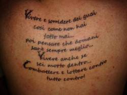 Il silenzio viene rotto dal primo suono di batteria e lo spettacolo ha inizio, il cuore batte all’impazzata e un fiume in piena ti riempie il cuore. Solo un “cultore” di Vasco può rivivere in questo scritto l’emozione dell’inizio di un concerto del grande cantante. In quel momento tutte quelle parole, e quel poeta senti che fanno parte di te, perchè c’erano quando hai dato il primo bacio, ti hanno accarezzato l’anima quando sei stato deluso e ti hanno fatto sentire immortale quando con qualche birra di troppo ballavi al suono di “Rewind”. Con Vasco tutto resta nel cuore, gioia e dolore , la sua musica penserà a far scorrere via ciò che ci fa male e ad imprigionare ogni battito di cuore che ci ha resi felici. Come vedrete da questa meravigliosa foto gallery di tatuaggi dedicati a Re Vasco, non solo soltanto io ad amarlo senza misura!