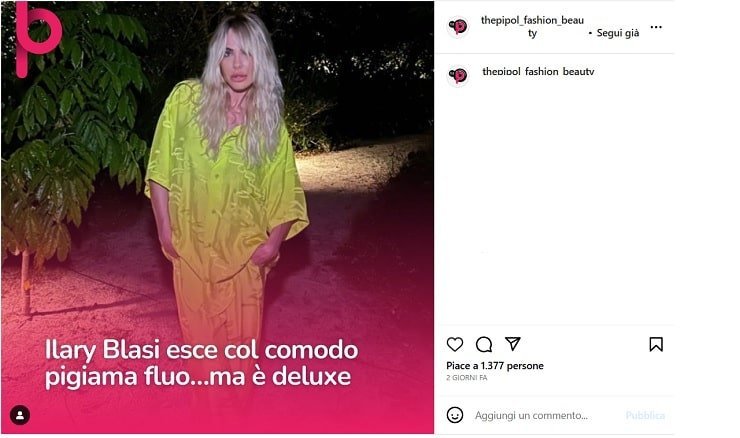 Come vedi, l’outfit di Ilary Blasi è stato scelto con particolare cura ed attenzione. Abbinando questi due capi, la showgirl ha seguito le ultime tendenze della moda. Altro che pigiama, come molti hanno supposto. L’audace e colorato look della showgirl è costoso e glamour e ha dimostrato ancora una volta che Ilary Blasi possiede una grande passione per la moda e una grande capacità di creare outfit originali e davvero sorprendenti.
