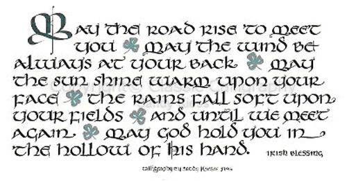 Questo bellissimo tatuaggio con una tradizionale benedizione irlandese dice semplicemente “Possa la strada sorgere per venirti incontro, possa il vento soffiare sempre alle tue spalle, possa il sole splendere caldo sul tuo viso, le piogge cadere morbide sui tuoi campi e fino a quando ci incontreremo di nuovo, possa Dio tenerti nel palmo della sua mano”.