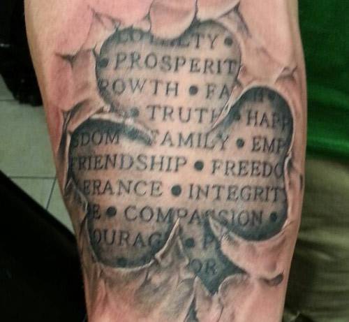 È difficile battere la bellezza di un tatuaggio di un trifoglio come questo, con la sua giusta dose di buona fortuna associata a parole che evocano potere. Puoi decidere di replicare questo tatuaggio come raffigurato in questa immagine ma con parole che hanno un significato per te e valori in cui credi.