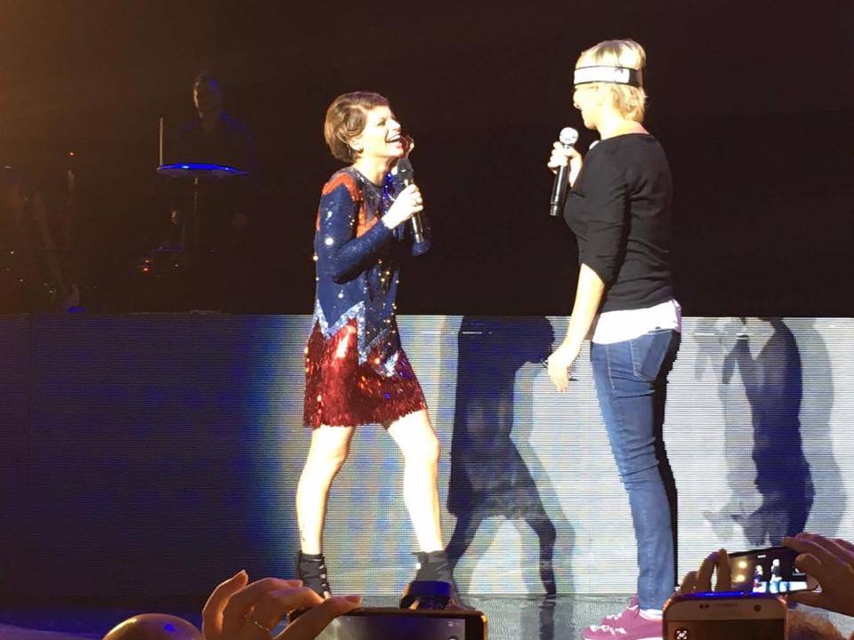Ieri sera al #VivereAColoriTour c’era anche una fan SPECIALE sul palco! Grazie Maria per la bellissima e inaspettata sorpresa! 😘 Ti voglio bene’ – ha commentato Alessandra Amoroso, allegando una sua foto con Maria sul palco.