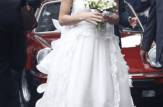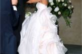 La bellissima Michelle è entrata in chiesa più radiosa che mai, con indosso un abito davvero romantico. Il vestito, firmato Antonio Riva, coniuga classico e moderno. Il top a fascia semplice ed essenziale controbilancia lo sfarzoso strascico decorato da pizzo e rouches.