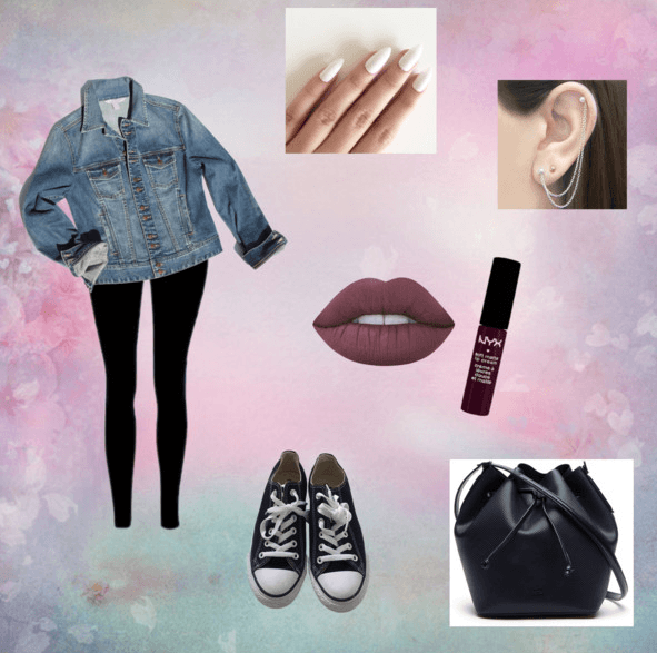 Boston Proper blazer jacket, €100 / Plus size cotton legging, €3,14 / Converse kohl shoes / Lacoste leather shoulder handbag, €220 / Otis Jaxon silver ear cuff, €25 / Lime crime lipstick, €18 / NYX lipstick, €5,94 / Nail treatment, €13