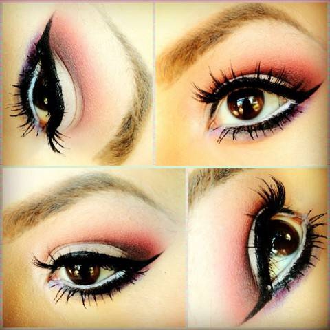 Innanzi tutto i colori, è necessario usare matite chiare all’interno dell’occhio: che sia bianca se hai la carnagione chiara o color champagne se sei scura di pelle non importa, quello che conta è che dovrete sempre evitare di mettere matite troppo scure all’interno dell’occhio, in questo modo tenderai soltanto a rimpicciolirlo ulteriormente. Colori scuri e caldi invece andranno usati sulla rima esterna superiore ed inferiore dell’occhio, senza esagerare con lo spessore delle linee: queste dovranno allungarsi leggermente verso l’angolo esterno dell’occhio così da allungarlo. Il segreto è poi quello di mettere colori chiari e shimmer all’attaccatura interna dell’occhio, andando a sfumare poi con colori scuri solo sulla parte esterna, per allargare ed intensificare ancora di più lo sguardo, come nella foto qui sotto