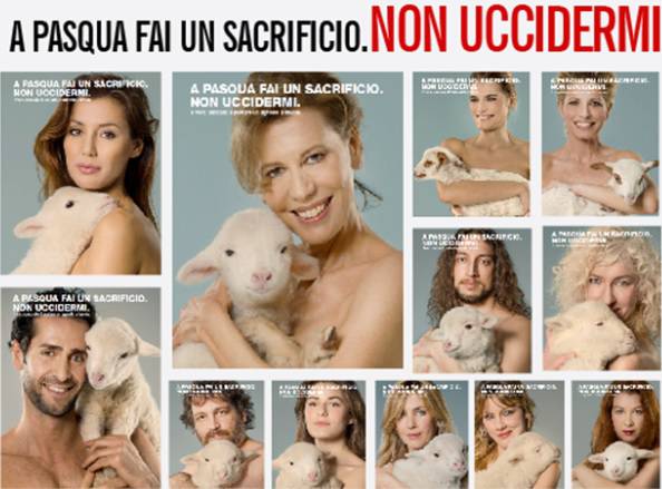 In questa occasione è stata lanciata anche una campagna pubblicitaria a Roma intitolata “A Pasqua fai un sacrificio. Non uccidermi“, prodotta dal fotografo Marco Biondi e dallo studio fotografico Allucinazione, con la direzione artistica di Letizia Ziaco: uno scatto in difesa dei diritti degli animali, contro la strage degli agnelli che si consuma appunto ogni anno in coincidenza con le feste di Pasqua.