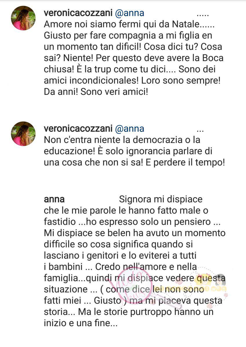 Veronica ha risposto prontamente alla ragazza, affermando di essere arrivata in Italia solo a dicembre per stare vicina a Belen nel momento difficile della rottura e di essere del tutto estranea ai fatti.