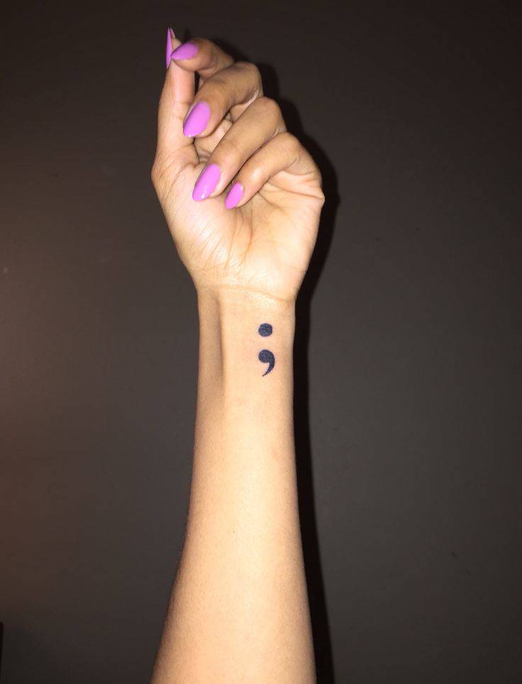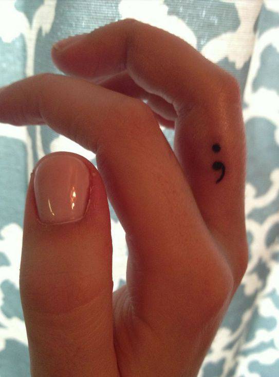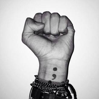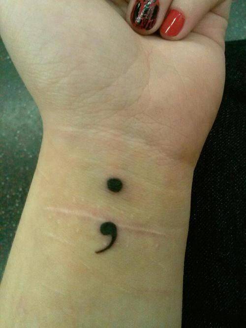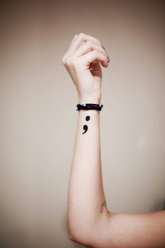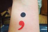 Twitter, Facebook, Instagram e Pinterest, sui social sono sempre più diffuse le foto del tatuaggio punto e virgola, il tatuaggio di coloro che aderiscono al “The Semicolon Project”, un’iniziativa che vuole mostrare il coraggio e la voglia di vivere e ricominciare di tutte quelle persone che hanno sofferto di ansia, depressione o pensieri suicidi e che hanno deciso di non interrompere la propria vita, di non metterci un punto.