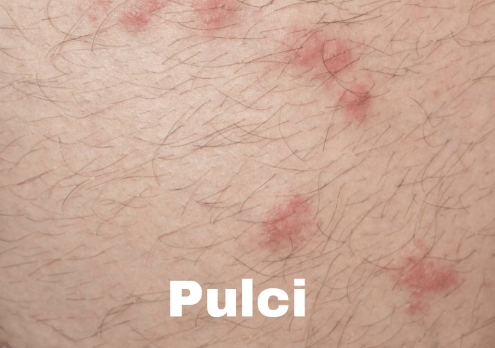 Se vi trovate in una zona con presenza di animali, è possibile imbattersi nelle punture di pulce. Esse si presentano a gruppi ravvicinati e sono piccole e pruriginose. Dopo aver lavato la pelle con acqua e sapone neutro, applicare una crema lenitiva o in caso di forte eruzione consultare il medico che provvederà a prescrivere un eventuale farmaco cortisonico.