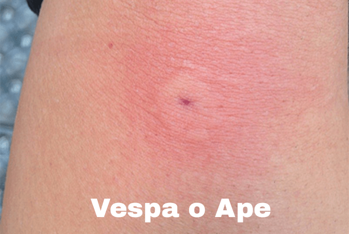 Le punture di ape o vespa si presentano con un grande pomfo doloroso e con al centro il segno di una pungiglione. Se si ha la certezza di non essere allergici al veleno di questi insetti, si potrà applicare una compressa fredda e una crema lenitiva. Se si è allergici, la puntura potrebbe dar luogo ad una forte crisi allergica che necessiterebbe di una iniezione di cortisone.