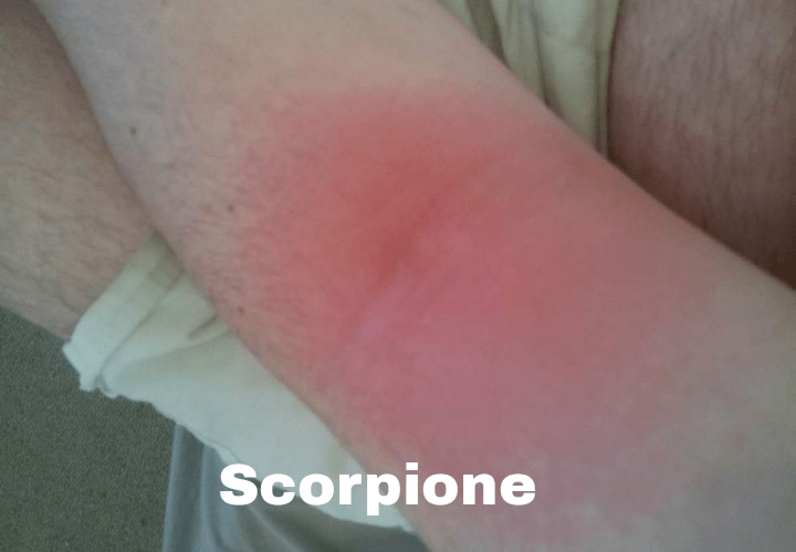 Gli scorpioni sono presenti nel nostro paese e sopratutto nelle zone di campagna. Il morso di questi animali provoca un edema doloroso. Si dovrà procedere con l’eliminazione del pungiglione e l’applicazione di pomate specifiche. Se non si risolve in poco tempo, consultare il medico, sopratutto se non si conosce il tipo di scorpione che ha morso.