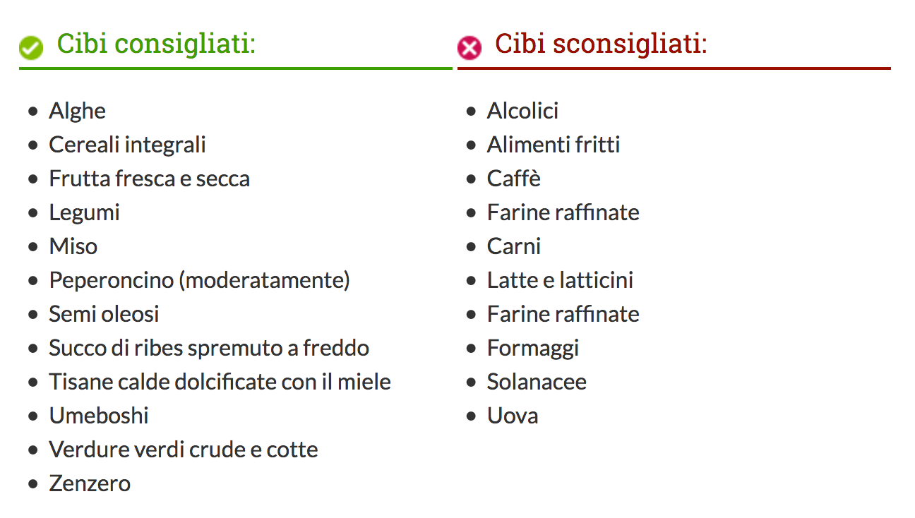 Un ultimo consiglio che possiamo darvi per prevenire la tosse, soprattutto quella grassa, riguarda l’alimentazione. Ci sono infatti cibi che possono agevolare la produzione di muco, come il latte e tutti i suoi derivati (formaggi, yogurt, ecc..), le farine bianche e tutti gli alimenti eccessivamente trattati. Possiamo riassumere il tutto con questo breve ma semplicissimo schema
