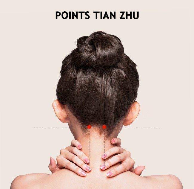Questi punti si trovano nella parte posteriore della testa, sono nella zona centrale tra le orecchie e l’inizio della colonna vertebrale. È necessario massaggiare questi punti per alleviare la congestione nasale, l’affaticamento degli occhi e il dolore alle orecchie, il mal di testa e l’emicrania.