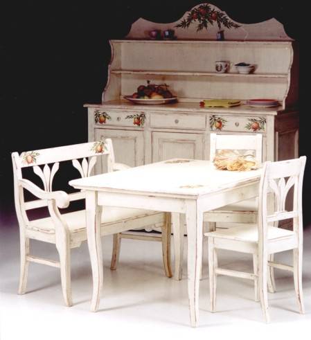 – Per chi invece ha più dimestichezza con l’arte del fai da te, possiamo esagerare consigliando oltre alla pittura dei vecchi mobili, di fare anche delle piccole applicazioni di qualsiasi genere, a seconda dell’ambiente in cui ci troviamo. Se la stanza ha un motivo fresco, possiamo optare per il bianco come pittura base, e poi comperare (o per chi ha la passione, creare da sole con il cernit, con il das, o con i fogli di rame) dei piccoli fiori (lilla, verde chiaro, celeste) con delle foglie, che possono percorrere in alcuni punti (non esageriamo con le applicazioni) il mobile; oppure chi ha una casa più moderna può azzardare con vere e proprie “opere d’arte”, magari tagliando una zampa di ogni sedia e sostituirla con ..dei piccoli libri o con un cubo di legno vuoto; piuttosto che decidere di rivestirle completamente di una stoffa assolutamente fuori dagli schemi (un raso nero, un taftà bordeaux, un blue a strisce bianche stile marinara…).